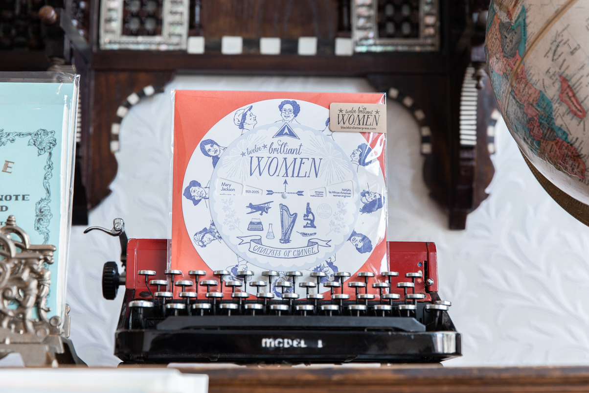 one of many that are sprinkled in little corners throughout the shop. This one featured a letterpress spinner card of twelve world-changing women resting in an old miniature typewriter. Small moments and messages of inspiration, thought, appreciation, empowerment are why I could spend hours here just looking around (and wanting to buy everything).